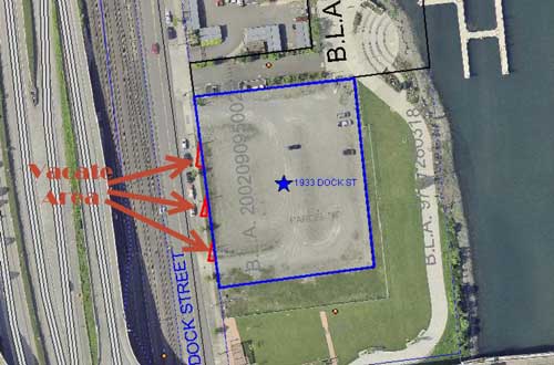 Last month the Henry Foss Group broke ground on its Foss Waterway mixed-use development called The Henry. The developer has requested the vacation of a portion of the air rights over Dock Street, north of SR-509, to allow them to build angled design elements beginning at 16.5 feet above grade. A design review found that the angled element would serve as a visual gateway to the Foss, adding visual interest to the design.
