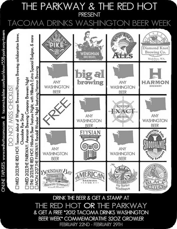 Two of Tacoma’s favorite bars have teamed up yet again to offer Tacoma a pleasantly formidable proposition: celebrate Washington-brewed beers by drinking 20 in one week to complete the above stamp card. Although the event kicked off last week, it’s not too late to celebrate the talent of local brewers with Tacoma Drinks Washington Beers Week from the Red Hot and the Parkway.