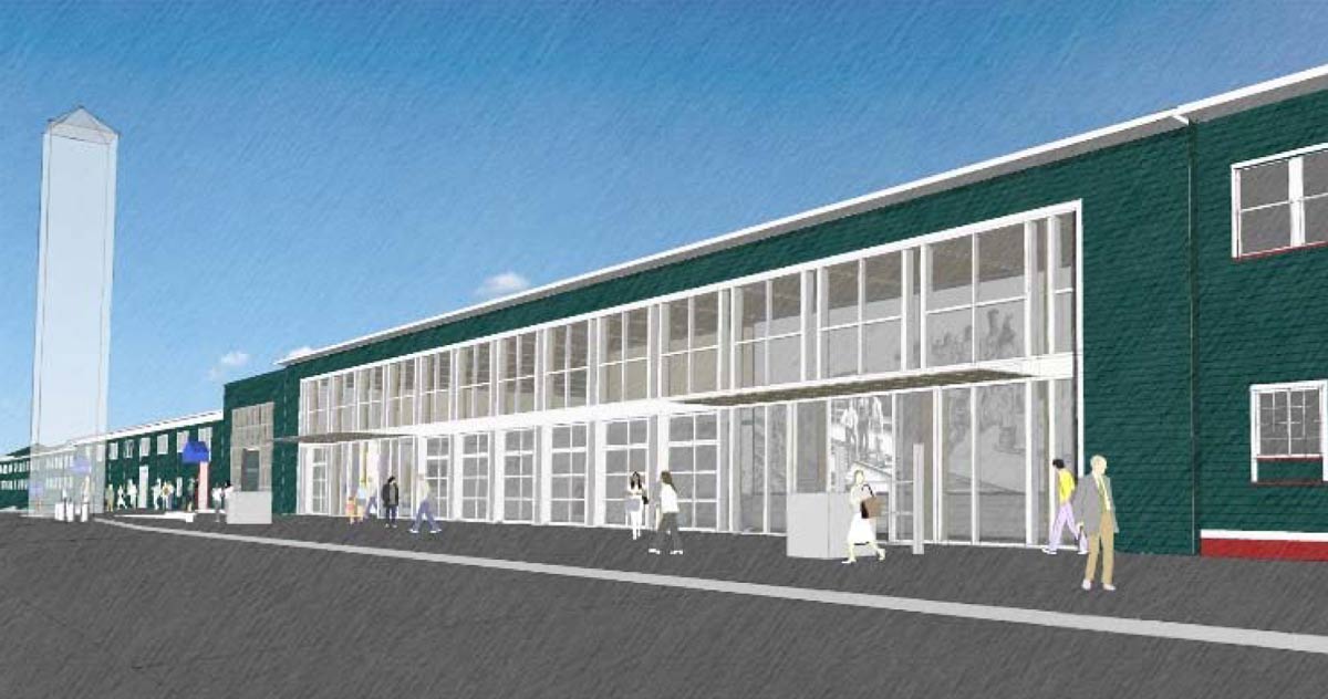 The new plans emphasize wood construction to match the old building on either side, rather than the original steel and glass design that would have replaced the western end of Freighthouse Square. The new design includes big windows, some of which could be opened garage door-style on nice days. There may not be funding for a raised pedestrian crossing or a clock tower, but there's room for their inclusion, if funding can be found.