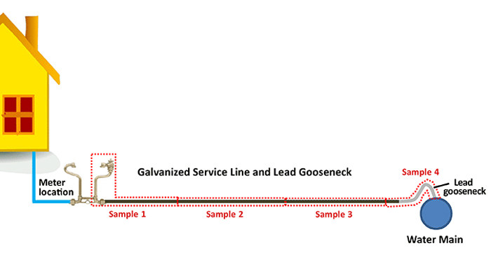 To do this, we proactively identified potential locations of lead goosenecks at four customers’ homes. Goosenecks are short sections of lead pipe (1’ to 2’ long) that were used in the early 1900s to connect some services lines to customer homes to the supplying water main.