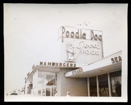 We saw these vintage polaroids of 1960s signage over at BoingBoing and thought, those are cool. We even flipped through the photos, but couldn’t be bothered by the words. A very astute Exit133 reader sent us a email noting that they were all taken in Washington – with many of them in Tacoma. Mt. Tahoma Diner. The Poodle Dog (in Fife, but close enough when it comes to kitsch). A billboard that says, “Welcome to Puyallup”. Seriously. How did we miss that?