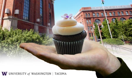 The University of Washington Tacoma, one of my alma maters, Whitney’s alma mater, and one of our regular advertisers, has a sweet little offer for any of you considering our fine downtown campus. Prospective students who take a UW Tacoma Campus Tour during Spring Break ’09 will receive a coupon for a cupcake from Hello, Cupcake. (Coupons good for prospective students only.)