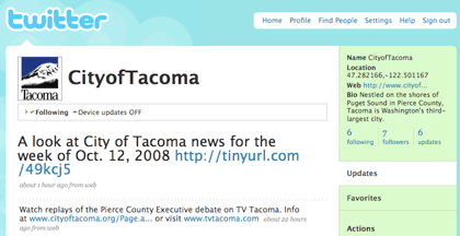 For all you twitterers out there, the City of Tacoma is venturing out into the world of social media and Twitter. It’s an experiment, from what we hear. So, if you’re so inclined, follow the City of Tacoma!