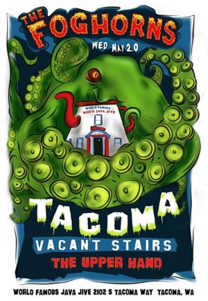 The Foghorns, a band from Seattle with midwestern roots and an Icelandic influence, will be playing Bob’s Java Jive again tonight. We mentioned these guys before and we heard good things about the show from you. Plus, we like the poster.