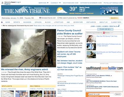 We were pleasantly surprised to be greeted by a new look over at thenewstribune.com this morning. They’ve redone their site, hopefully making it more user friendly. At least once I find everything …