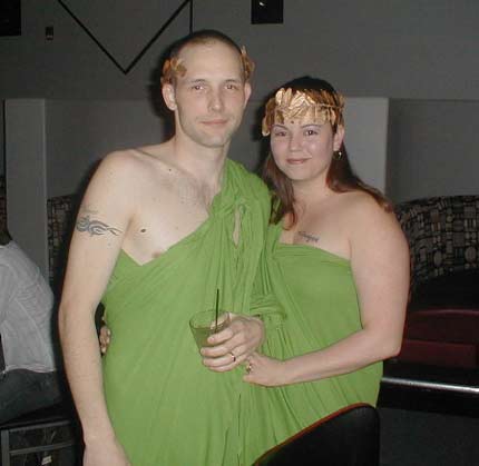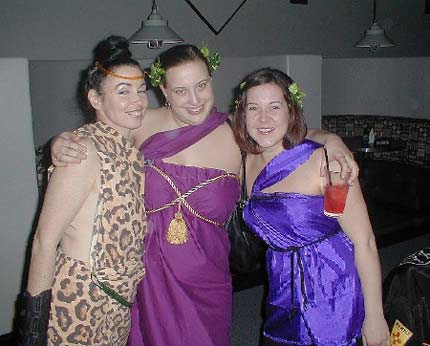 We attended the Dockyard Derby Dames toga party and Jell-O tm wrestling event at The Garage on Saturday night. At 9:00 there were 35 togans and 15 in civvies, plus the burliest doorman and Id checker recently seen with 6 assorted bulky dudes scattered around the place to keep the peace. The thumpin housewreckin’ machine music (say goodbye to your hearing kids) seemed perfect for the thumpin’ bumpin’ Derby Dames. Adorably wicked merchandise was for sale embossed with the DYDD vixen smilin’ to soften you up just before they knock yer arse into the last century. The girls and their boys were a nice bunch. We will be sure to attend their first match May 5th at The Tacoma Soccer Center.