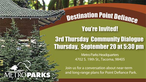 Point Defiance has some interesting changes planned for its future, and Metro Parks Tacoma is inviting you to a conversation on Destination Point Defiance, the short and long-term planning for the park.