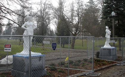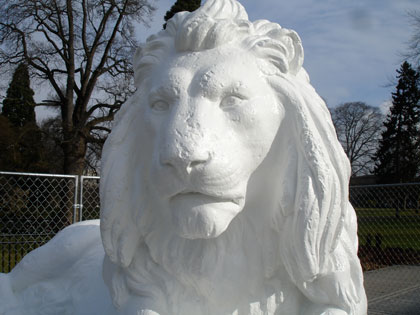On our way to the office this morning we noticed the Ladies and Lions of Wright Park – the ones that have been hiding under plastic for several weeks now – have been unwrapped for the us to see!