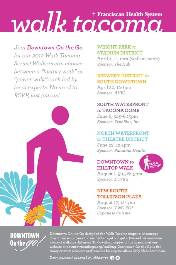 And if you love these walks, and the work Downtown On the Go does to get Tacoma out and walking, you can support their efforts by purchasing a $10 Walk Tacoma t-shirt either at the Walk Tacoma events or the Broadway Farmers’ Market.
