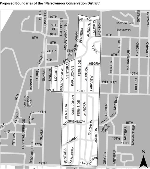 Having failed to get a historic district designation several years earlier, a group of homeowners from the neighborhood brought a proposal to the City for a "conservation district overlay" that would discourage unneccessary teardown of existing homes and subject any new construction or significant additions in the area to a set of criteria designed to maintain the character of the neighborhood.