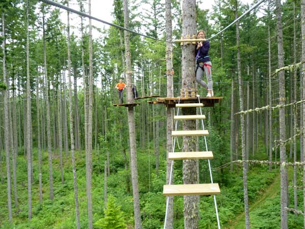 Visitors get multiple opportunities to zip-line between trees high above the ground.