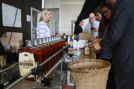 (above) Tacoma Art Museum staff working alongside Heritage Distilling Co.’s crew in Gig Harbor to bottle the final cases of the signature Tacoma New West Bourbon Whiskey, a joint-creation between HDC and TAM in honor of the November 15 grand opening of TAM’s Haub Family Collection of Western American Art and museum expansion.