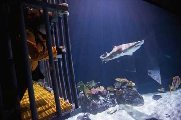 For the first time, visitors will climb into the South Pacific Aquarium with more than a dozen sharks – including a 450-pound, 9-foot lemon shark.