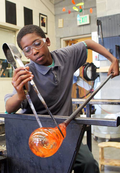 Hilltop Artists were co-founded by Tacoma-native Dale Chihuly with Kathy Kaperick in 1994. For the past 20 years, their mission has been to transform the lives of youth ages 12 - 20 through the power of art, adult mentorship, and wrap-around services. With humble beginnings in a former woodshop at Jason Lee Middle School, Hilltop Artists students’ first foray into glass involved converting ordinary Snapple bottles into blown glass drinkware and vases. Currently they blow glass for more complex projects and recently completed several large installations for MultiCare.