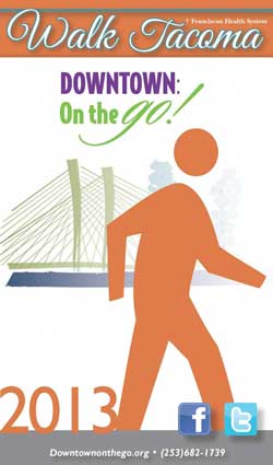 The Museum Walk is part of Downtown On the Go’s 2013 Walk Tacoma series sponsored by Franciscan Health System. It is an eight-event walking series held on the first and third Wednesdays, from April through August. The fun, themed walks, now in their fourth year, encourage downtown employees and residents to exercise and enjoy the outdoors by discovering the different walking routes and parks in downtown Tacoma. The walks are scheduled at the lunch hour and just after work to encourage downtown employees to walk during their workday, whether it is to and from work, at a lunch break, or to a nearby meeting.
