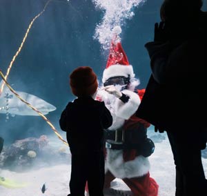 Santa arrived at Point Defiance Zoo & Aquarium to squeals of delight from children. But this wasn’t an ordinary arrival. This Santa showed up in scuba-diving gear. Oh, and by the way, he was swimming among 17 sharks in the zoo’s South Pacific Aquarium.
