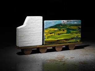 Brenden Scott French’s work has always used narrative pieces to explore the themes of adaptation and survival that come to light in times of conflict. These themes are important to French, who has always been at odds with the lack of sustainability inherent in the practice of glass making. His most recent series of wall panel landscapes continues to exhibit these themes by invoking the idea of man vs. nature while employing a unique kiln-formed technique to create a mosaic-like effect composed of opaque glass. The results of this process are visually striking wall panels that narrate a universal story while being reminiscent of abstract expressionism.