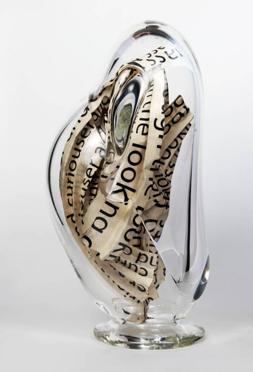Imaage: Demaine, Erik; Through the Looking Glass II, 2012; Elephant hide paper and hand-blown glass; 6” x 6” x 12”; Courtesy of the artist.