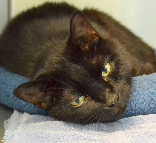 Black cats are all the hype this time of year. But don’t let the season fool you—they make amazing companions all year round. Drake is a wonderful 5 year old black domestic shorthair with stunning yellow eyes that are sure to captivate you. Drake is looking for a home where he can spend his hours leisurely on the couch, receiving gentle head pats of love and attention.