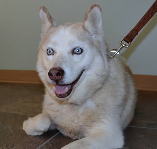 Founder is a very happy girl! She is a beautiful cream colored Siberian Husky with an eager and sweet personality. Founder is curious and really loves to be around people. She enjoys resting by your feet, and would be very excited in a home where she can keep you company during the day. She is very mellow but loves attention, especially her cheeks rubbed in circles!