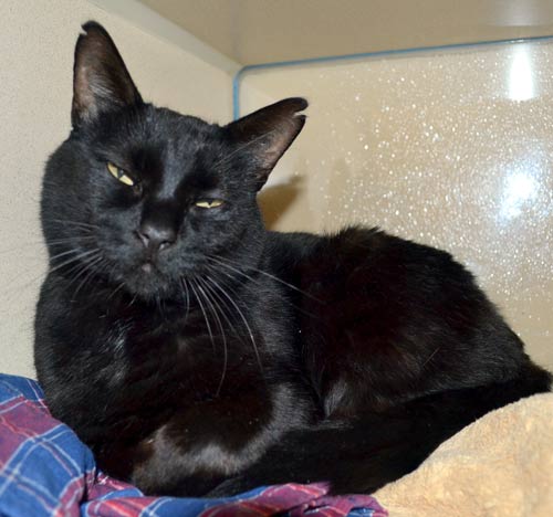 Joey is a 6 year old black domestic short hair who came to us after a big adventure! He bravely spent a few weeks on the street after his family moved away, until a neighbor realized he was a total love bug. Joey came to us with a bite on his tail, but otherwise healthy, happy and calm . He has an adventurous side but mostly just wants to cuddle, and loves his head scratched.