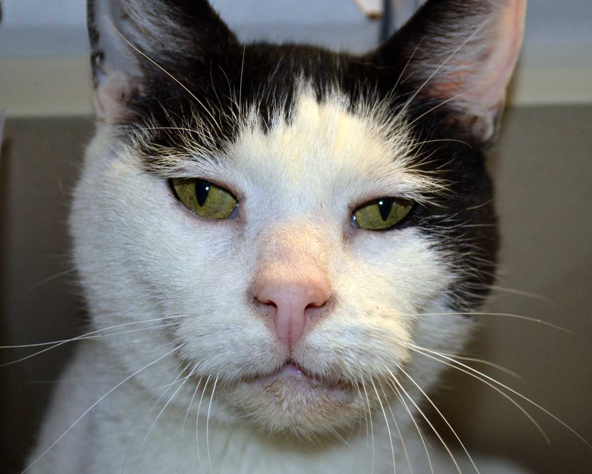 Mr. Moo is the epitome of a stellar cat who loves to be loved. He enjoys being petted and shows you his appreciation by giving you gentle head-butts. If you were to pick him up to cuddle, he would relax completely in your arms and enjoy the attention. This lovable 8 year old does have a cute little quirk—he’s a drooler. Due to the fact that Moo is missing a few teeth, he tends to drool, especially when he’s comfortable. Other than missing some teeth, Moo does have a heart murmur.