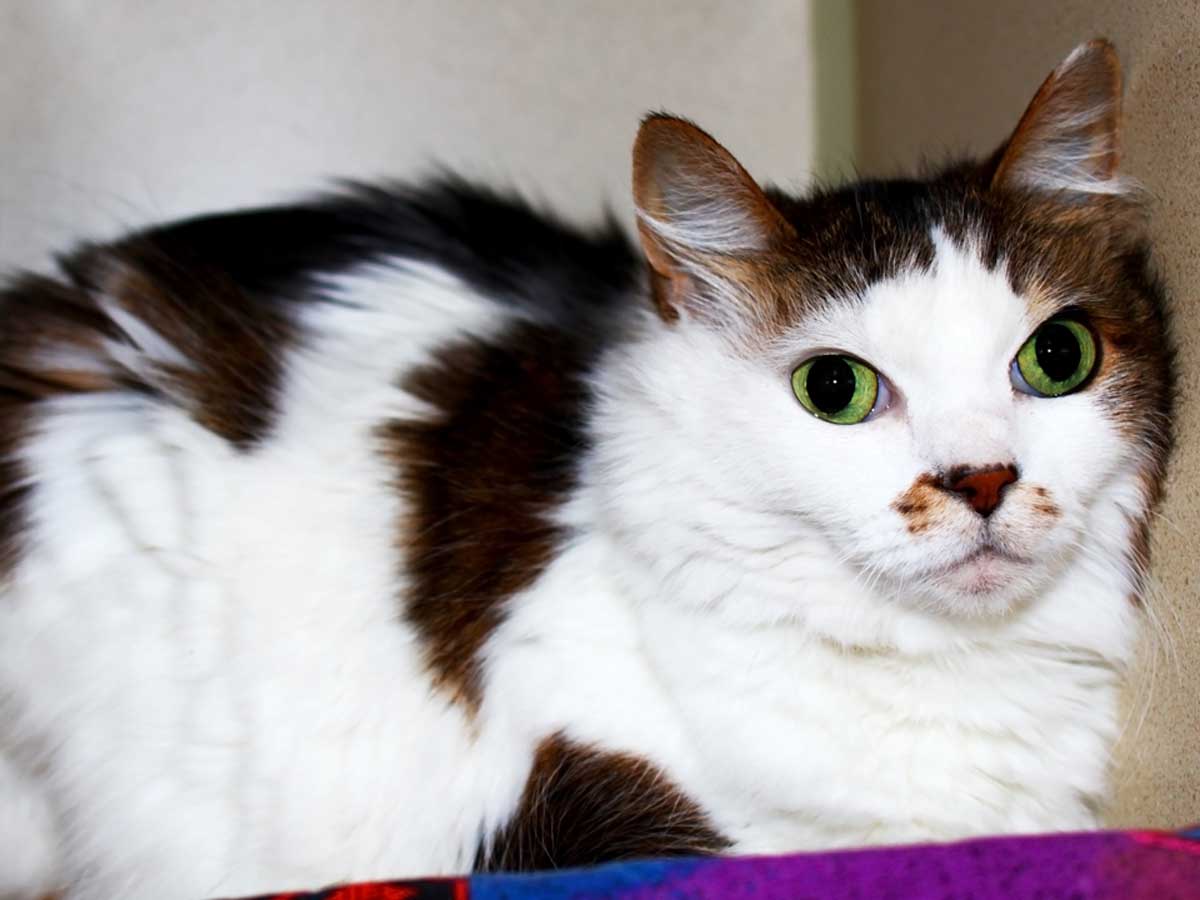 Peaches is ideally suited for a household with older adults, as she has not spent much time around children. If you have dogs, Peaches doesn’t mind. She has had good experiences with pooches, but not so much with other cats.