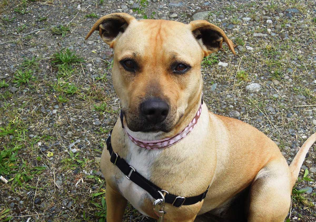 She is up for anything and will be happy with whatever activity you do with her. Even laying outside in the sun is a joy for this Pit Bull Terrier mix.