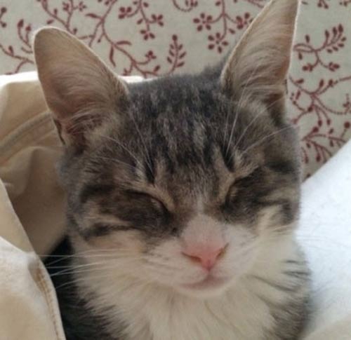 Squinchy is a special boy who has an extraordinary amount of love to offer. This three month only neutered male is nearly blind, due to a viral upper respiratory infection as a young kitten. This virus will remain with him his entire life, possibly flaring up in the form of a runny nose or watery eyes during times of stress. His lower eyelids also roll inward, causing irritation. This condition could resolve itself, but if not, he may need corrective surgery as an adult.