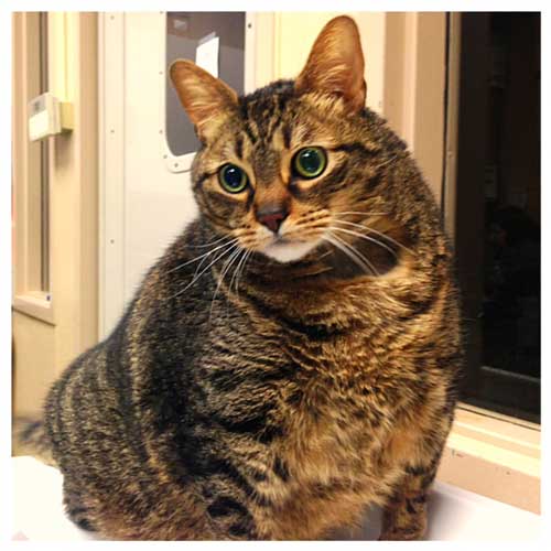 Weighing in at an astounding 27 pounds, Wally is an extremely sweet and sociable kitty who loves any attention he can get. Needless to say, he gets a lot of it. He is a 7 year old brown tabby who is in need of an honest lifestyle change. Wally’s new forever family must take the time to ensure he receives the care and attentiveness that he deserves. Due to his weight, Wally cannot properly groom himself. He needs his future human companion to brush his coat on a regular basis to ensure he stays as handsome as always.