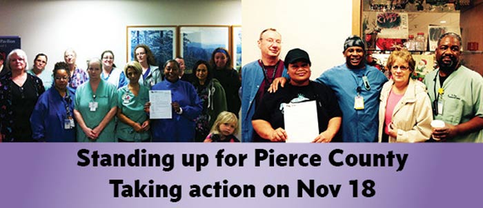 TACOMA- Pierce County needs quality, affordable healthcare and good jobs and now 1,100 healthcare workers are ready to take a stand to hold CHI-Franciscan to its responsibility to provide good care and good jobs our community. The workers, united in SEIU Healthcare 1199NW, delivered notice to CHI-Franciscan St. Joseph’s Medical Center in Tacoma and CHI-Franciscan St. Clare Hospital in Lakewood that, unless the hospitals settle a contract that includes an improved investment in frontline care and end unfair labor practices, they will strike on Tuesday, November 18.