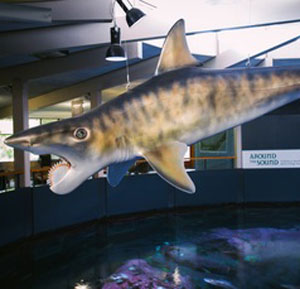 The Buzz Saw Sharks of Long Ago exhibition is grounded in science while at the same time springing from the lively imagination of Alaska artist Ray Troll, who has persistently pursued details of the gigantic prehistoric shark for more than two decades.