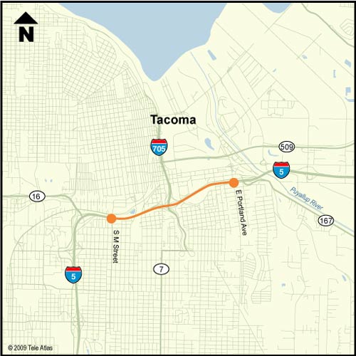 The exit will remain closed around the clock until mid-November. A signed detour will be provided that directs motorists to SR 7 via Interstate 705 and State Route 509.