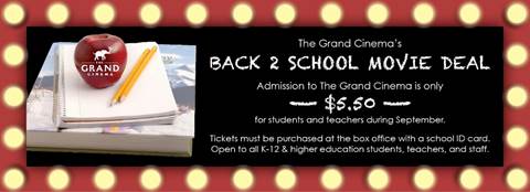 The Grand Cinema Announces September “Back to School” Admission Special