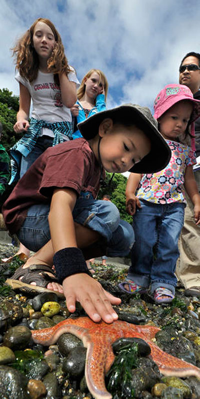 Zoo naturalists accompany participants on low tide beach walks, where kids and adults will learn to identify tide pool animals and record their presence and location for addition to the scientific NatureMapping database (www.http://naturemappingfoundation.org). Participants will learn about the biological diversity of local beaches and better understand how to protect them.