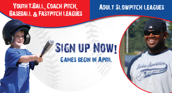 Registration is open for youth baseball, t-ball, coach pitch and fastpitch through March 20. The season begins the week of April 27.