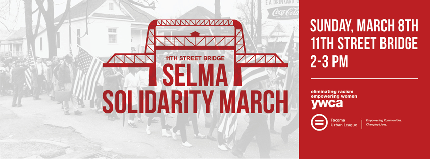 On Sunday March 8th, 2015 at 2 pm, the Tacoma community will come together in solidarity to support the 50th Anniversary of the Selma to Montgomery Voting Rights March. Over 250 participants are expected at this event. YWCA CEO Miriam Barnett came up with the idea and says, “When I heard about the Selma March I immediately wanted to organize a Solidarity March in Tacoma. An idea became a reality when I contacted Victoria Woodards, CEO of the Tacoma Urban League and she was instantly on board.” Victoria Woodards commented, “The Urban League has organized Marches before with a very short timeline. I see this as a great connection to a historic moment in the civil rights movement and we are thrilled to partner with the YWCA to make this happen.” The march will take place with the support of other community organizations including the City of Tacoma, ASCC, Pierce County Democrats, Tacoma Human Rights Commission and Tacoma Stands Up.