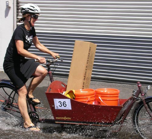 The Disaster Relief Trials sends cyclists on cargo bikes around a challenging course, criss-crossing the city, completing simulated emergency tasks. It's like cyclocross meets first aid class. The idea is that in the case of an emergency, bikes can carry things faster and in greater volume than a person on foot, and navigate some potential disaster-related challenges more easily than automobiles.